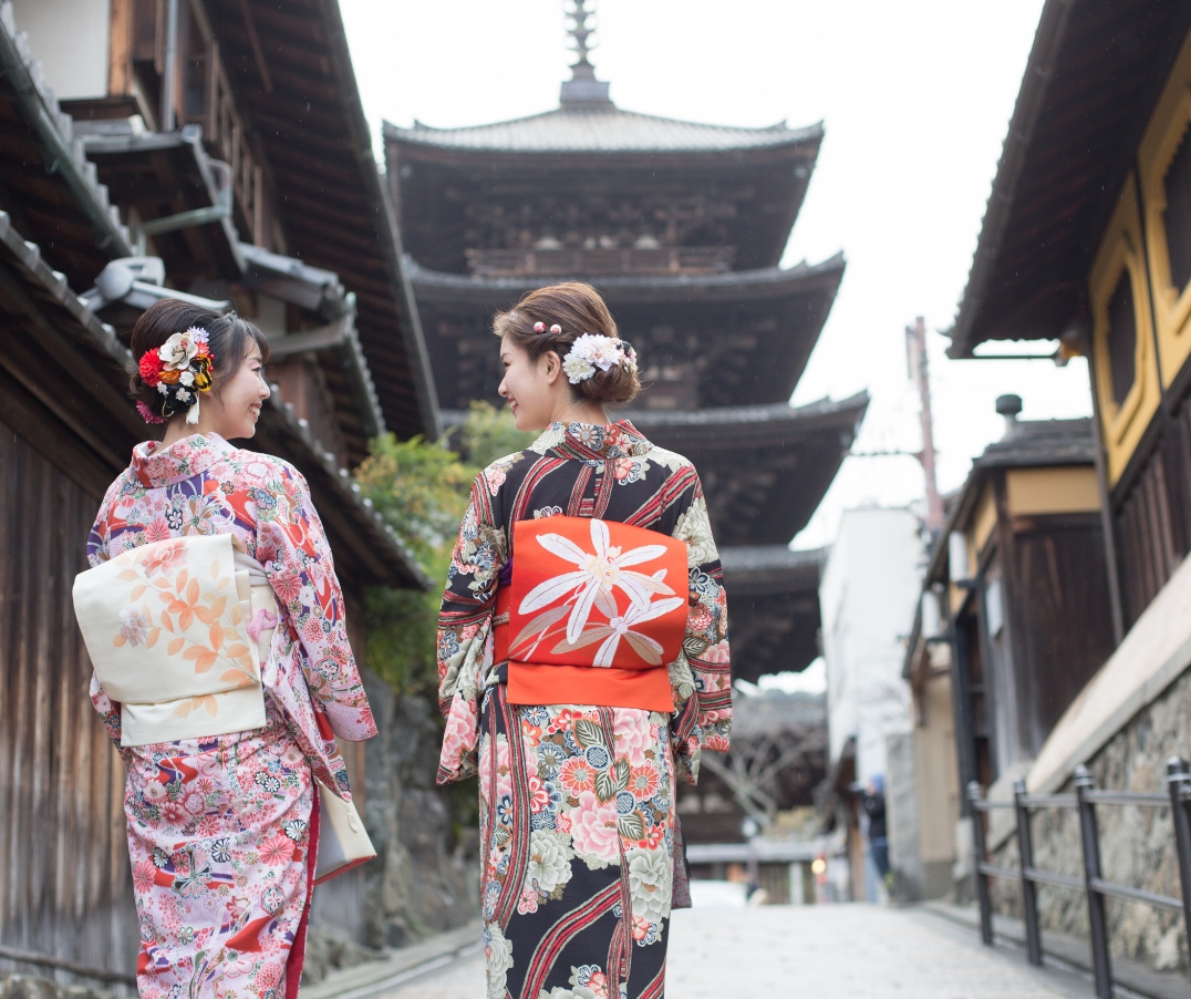 京都という都市は着物での散策にぴったり。京都は春は桜、夏は祇園祭、秋は紅葉、冬は雪景色など、四季を感じられるイベントや場所がたくさん。それは京都ならではの非日常的な空間だといえるでしょう。その中で着物姿になれば、いっそう、京都の町並みの中に溶け込めます。